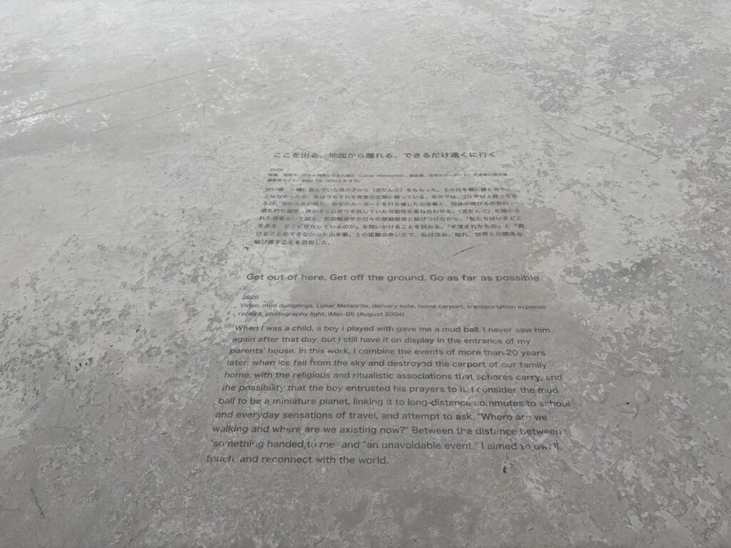 その他に気になった作品として、北澤潤の≪フラジャイル・ギフト・ファクトリー≫と、ズガ・コーサクとクリ・エイトの≪地下鉄出口 1a≫、≪地下鉄出口 2≫を挙げておこう。北澤は、第二次世界大戦で日本軍が使っていた戦闘機「隼」(ハヤブサ)をモデルにして、原寸大の凧を制作した。ズガ・コーサクとクリ・エイトは、最寄りの地下鉄の駅の出口を段ボールで原寸大に再現した。北澤は、第二次世界大戦から現代までの時間を、ズガ・コーサクとクリ・エイトは、通勤通学などの日常の時間を表現したのだろう。